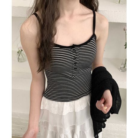 裾のレースデザインがフェミニンで華やかな印象を与えるキャミソール。