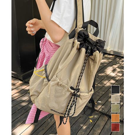 カジュアルな雰囲気が魅力の巾着デザインバックパック。