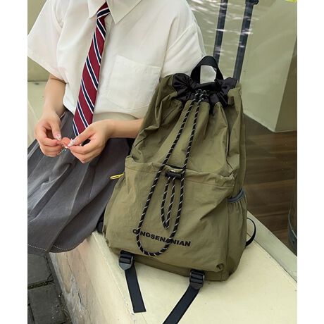 カジュアルな雰囲気が魅力の巾着デザインバックパック。