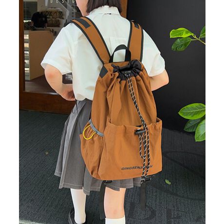 カジュアルな雰囲気が魅力の巾着デザインバックパック。