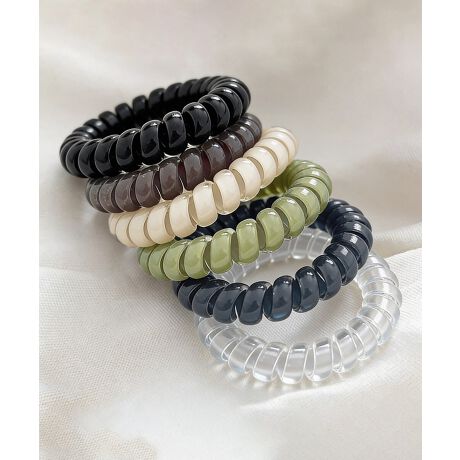 サッと簡単にしっかりととまるスパイラルリングヘアゴムの6色セット。