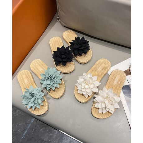 立体感のあるフラワーモチーフが目を引くサンダル。