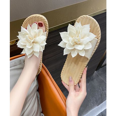 立体感のあるフラワーモチーフが目を引くサンダル。