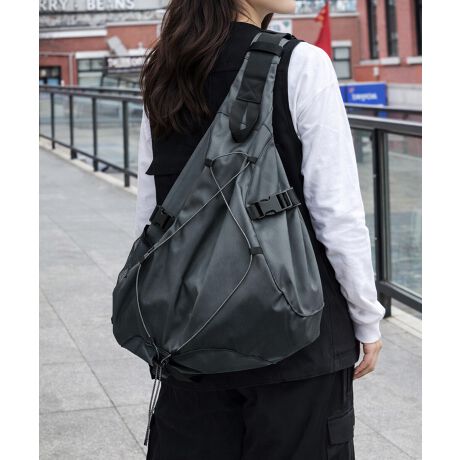 スタイリッシュな雰囲気を引き立てるドロップ型ワンショルダーバッグ。
