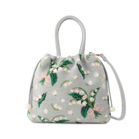 「ピュールミュゲ」の巾着ショルダーです。コンパクトで使い勝手の良いサイズ感が魅力的。内側には2つのオープンポケットを備えて、収納力も重視しました。ショルダーストラップは取り外しと長さ調節ができます。ちょっとしたお出かけや旅行のときにも活躍するアイテムです。