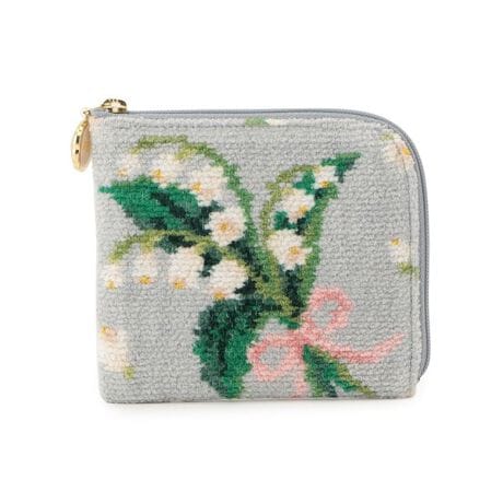 風に揺れるすずらんを描いた「ピュールミュゲ」のミニポーチです。開口部をL字ファスナーにすることで中身を出し入れしやすい仕様に。内側には仕切り状のオープンポケットを中央にあしらいました。カードや小銭を入れたりと、ミニ財布としてもおすすめしたいアイテムです。