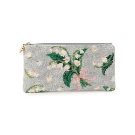 長さがあるアイテムをまとめるのに便利な「ピュールミュゲ」のフラットポーチです。文房具やメイク道具、マスカラなどの持ち運びに重宝します。マチがないので場所を取らず、バッグの隙間にスリムに収まるのもポイント。内側には2つのオープンポケット付きで、小物を仕分けして収納することもできます。