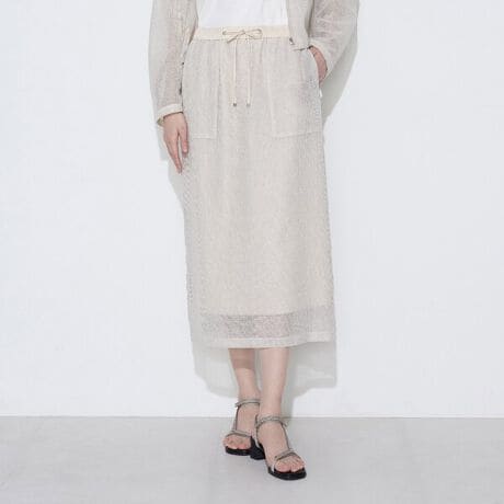 ヒップから裾にかけて自然に落ちるラインが、身体の輪郭を拾いすぎず、落ち着いた印象を与えます。