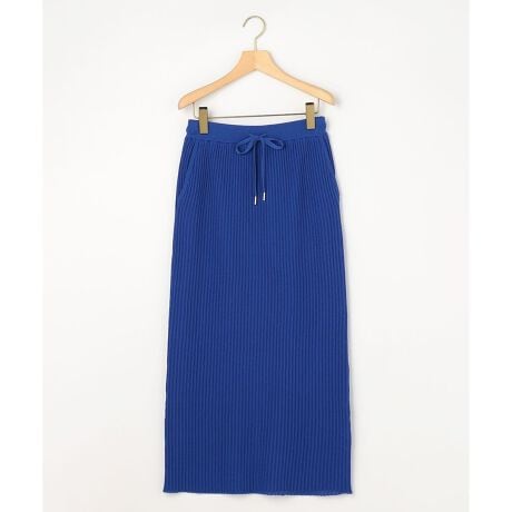■デザイン・ほどよい生地の厚さと、ウエストゴム仕様でストレスフリーな穿き心地を叶えるスカート。・すっきりとしたIラインシルエットで、ボリュームのあるトップスともバランス良く着こなせます。・エレガントな印象を与える絶妙な丈感もポイント。ウエストのドロストコードは紐先がゴールドの金具になっており、さりげなく品のよさをプラスしています。・同素材のトップスとセットアップでワンピースのように合わせるスタイルもおすすめです。