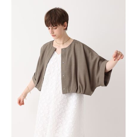 クロップド丈のコンパクトさがありながら大胆に入った深いタックで分量を出し、大きく開いたアームホールでゆったりとした軽いブルゾンに仕上げています。