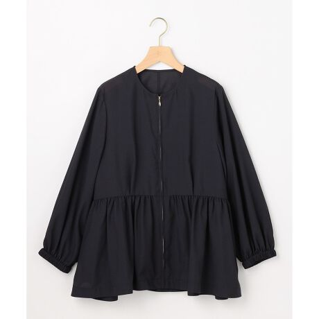 ■デザイン・程よい透け感にこだわり、品がありながらもナチュラルな雰囲気に仕上げたブラウス感覚のブルゾンです。シワが気になりにくく持ち運びにも便利なアイテムです。何といっても軽やかな着用感が魅力です。・カジュアルの中にも女性らしさが見え隠れする、ウエストから裾に向かって広がるシルエットのブルゾンは、ブラウスのような軽い素材を使用しながらも、素材に合わせた細部のデザインやシルエットの設計、細部まで丁寧に仕立てることで、ブラウスのような気軽さとアウターのようなきちんと感を両立しました。・襟元はすっきりと、ウエストはペプラムデザインでメリハリのあるシルエットが簡単につくれ、パンツはもちろんスカートなどボリュームのあるボトムとの合わせもしやすいです。・ゆったりとした着心地ながら、着ぶくれせずすっきりとした印象がつくれ、袖口のギャザーがこなれ感をプラスします。使い勝手の良い着回し万能なアイテムです。