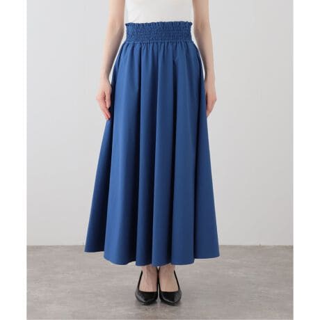 ストレッチ性、撥水性、イージーケア性などの機能がありつつ、リネン混で少しナチュラル感のあるナイロン素材を使用したスカート。生地に程よくハリ感があり、形がきれいに出ます。ウエストはオールゴムで楽に履けつつ、インしたときにポイントになるデザインです。女性らしく品よく着こなしたいとき、カジュアルな装いに女性らしさをプラスしたいとき。