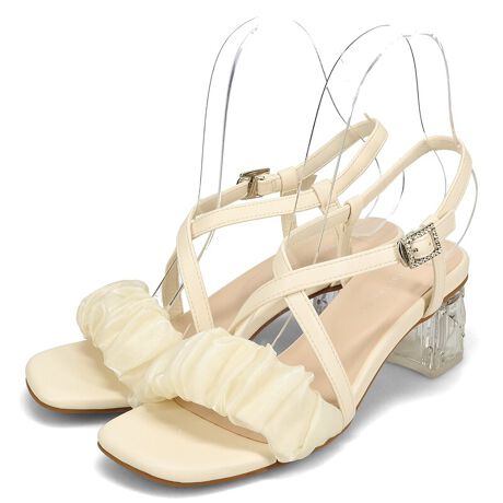 【26春夏新作】チュールベルトクリアヒールサンダル/61228
