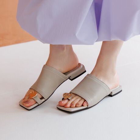 アクセサリー感覚で取り入れられるメタルパーツがポイントのサムリングサンダル。