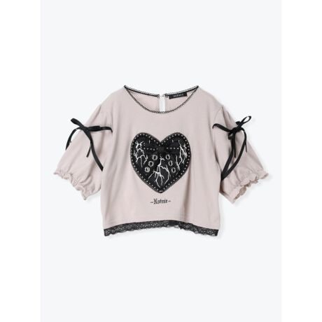 ハートのモチーフにハトメがアクセントになるTシャツ。