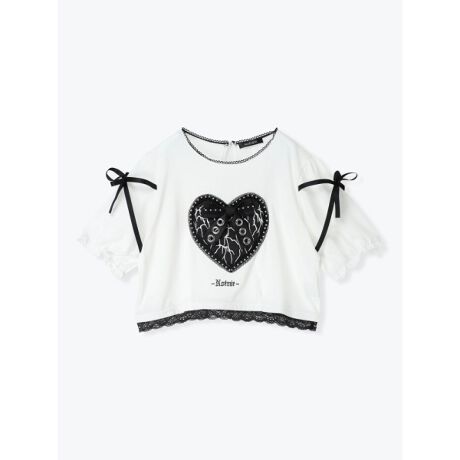 ハートのモチーフにハトメがアクセントになるTシャツ。