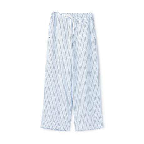 サイズ感を調節できるリラクシーなはき心地のイージーパンツです。触れた瞬間にひんやりと感じる接触冷感仕様になっています。サックスと黒は着回しやすい無地、ブルーはさわやかなストライプ柄。暑い時期のお出かけ着にはもちろん、部屋着としても活躍します。【おすすめの着用時期は春夏シーズン】