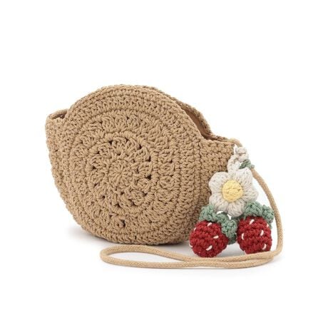 立体的に編まれたキュートなモチーフが目を引くポシェットです。