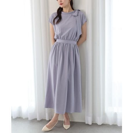 きちんと感×ナチュラルな大人のショルダーリボンワンピース