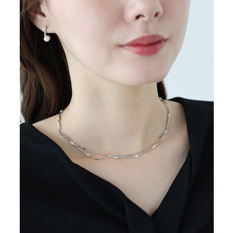 光の反射できらきらと輝くグリッターのような艶めきの2連ネックレス。