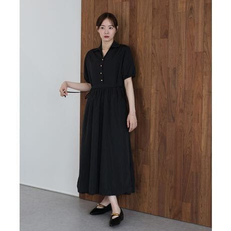 今季のトレンドであるバルーンシルエットを、やや光沢感とハリ感のある素材に落とし込み、モダンに昇華させたシャツワンピース。