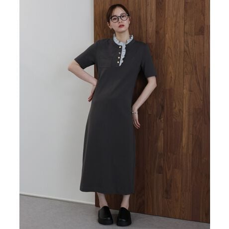 素材のコントラストで魅せるシャツドッキングワンピース