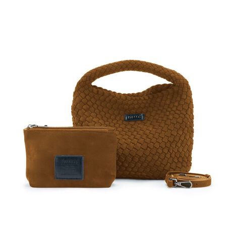 しっとりとしたスエード調の素材を使用した、コンパクトサイズの2wayハンドバッグ。