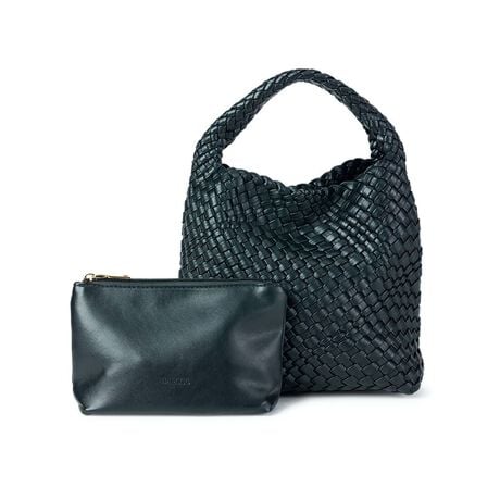 細やかに編み込まれた光沢感のあるメッシュ素材が印象的なハンドバッグ。
