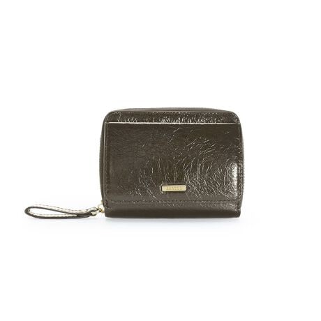 気品漂う艶感が美しい、しわ加工を施したパテントレザーの蛇腹式のミニウォレット。