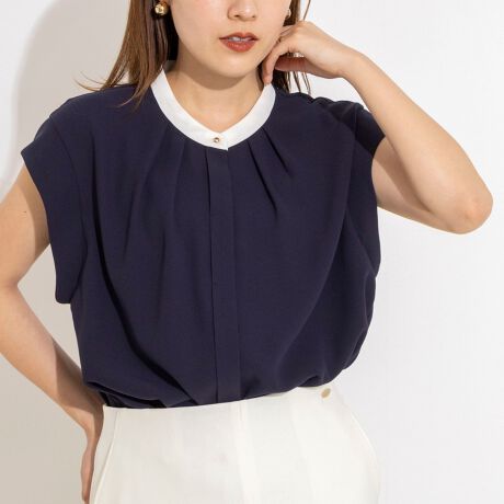 ・襟の配色が全体を引き締め、きちんと感のあるブラウス
