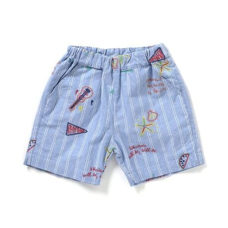 apres les cours(アプレレクール)のパンツ「サマーモチーフ総柄刺繍ハーフパンツ」は、ナチュラルなスタイルにさりげなくデザインをプラスしたおしゃれアイテム*