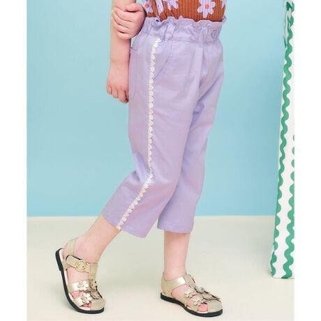 apres les cours(アプレレクール)のパンツ「ひんやりサイドレースクロップドパンツ」は、ナチュラルなスタイルにさりげなくデザインをプラスしたおしゃれアイテム*