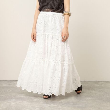 【MAQWEL/マクウェル】ウォッシャブルコツトンレースティアードスカート