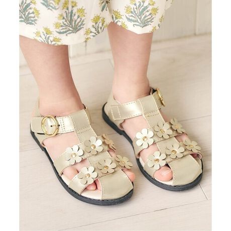 apres les cours(アプレレクール)の靴「フラワーグルカサンダル」は、足元からおしゃれになれるデザイン。おようふくとのスタイリングも楽しんで。