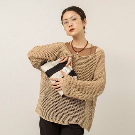 ・綿100%の軽やかな糸で編み上げたメッシュニット
