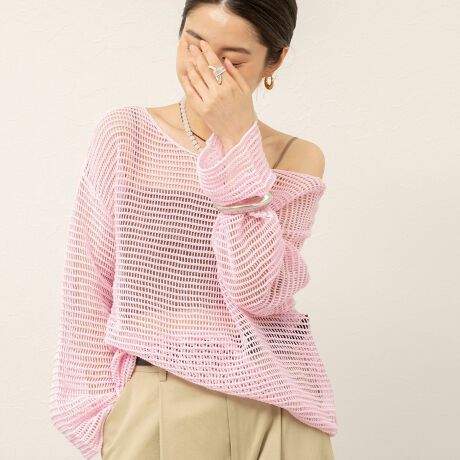 【MAQWEL/マクウェル】ウォッシャブル透かし編みサマーニットプルオーバー