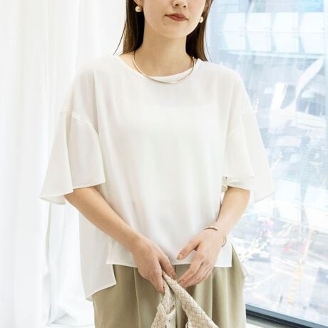 ・フレアスリーブが女性らしく、気になる二の腕もさりげなくカバー