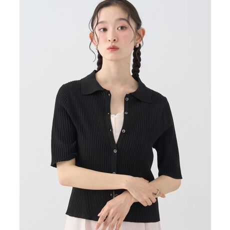 細めのリブ素材が華奢な印象に見せてくれるカーディガン。ベーシックに着回せる無地のブラックと、ラインアクセントが魅力的なアイボリー、チャコールグレー、ネイビーの4色展開にも注目です。豊かな伸縮性で着心地の良さも魅力的。ボタンを閉めて一枚着としても活躍するおすすめのアイテムです。