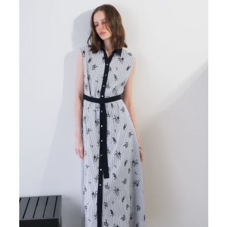 ストライプ柄に繊細なフラワー刺繍を施した、表情豊かなワンピース。