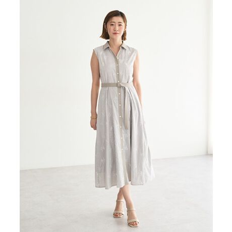 ストライプ柄に繊細なフラワー刺繍を施した、表情豊かなワンピース。