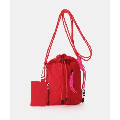 付属のミニポーチは取り外し可能。撥水素材を使用しているためキャンプやフェス、アウトドアにぴったりのショルダーバッグです。紐は結ぶ位置で長さ調節可能◎