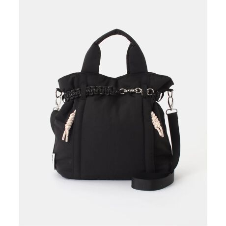 コーディネートに合わせて持ち手を変えられるので、飽きることなく楽しめます。撥水生地を使用しているので、急な雨やレジャーシーンにも活躍し、ペットボトルも収納可能でちょうどいいサイズ感のバッグです。使い勝手の良いフロントポケット付きです。