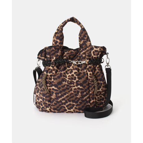 コーディネートに合わせて持ち手を変えられるので、飽きることなく楽しめます。撥水生地を使用しているので、急な雨やレジャーシーンにも活躍し、ペットボトルも収納可能でちょうどいいサイズ感のバッグです。使い勝手の良いフロントポケット付きです。