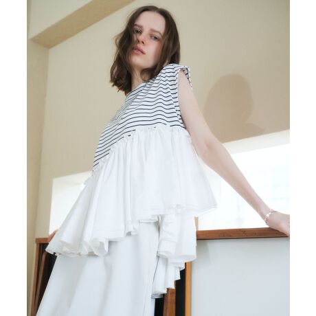ボリューミーなペプラムをドッキングしたカットソー。