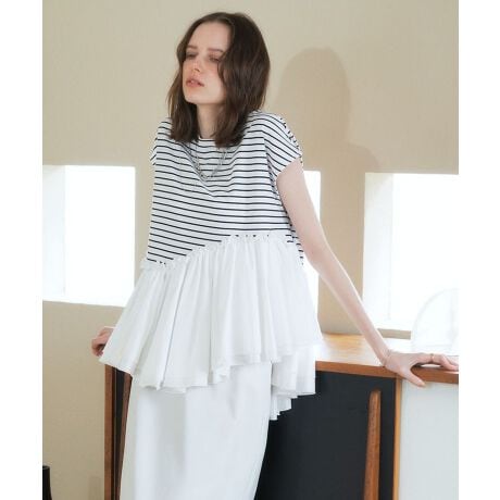 ボリューミーなペプラムをドッキングしたカットソー。