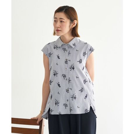 きちんと感のあるシャツカラーで上品さを保ちながら、フレンチスリーブ仕様で涼やかな印象に仕上がります。