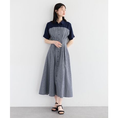 シャツとベアワンピースをレイヤードしたようなドッキングワンピース。