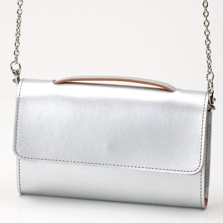 [型番:T3202]ヌメ革の表面にブラックとシルバーを吹き付けたTIDEWAYオリジナルレザー。コバや床面を染めず、切り口の色をポイントに。クラフト感がありながらもモードな雰囲気を漂わせるシリーズです。ショルダー取り外して、手持ちで持ったりスタイリングやシーンに合わせて・・・お札・カードスペース/ファスナー小銭入フリーポケットはスマホや通帳等が入る広めのポケット(注:サイズチェック!)