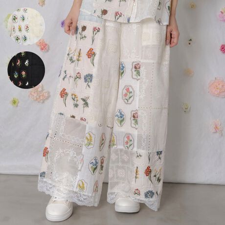 【軽やかに揺れる、レース×刺繍の切替シアーパンツ】
