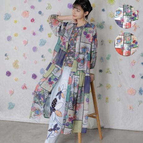 【スカラーの世界観をたっぷり楽しめるコラージュ柄シャツワンピ】